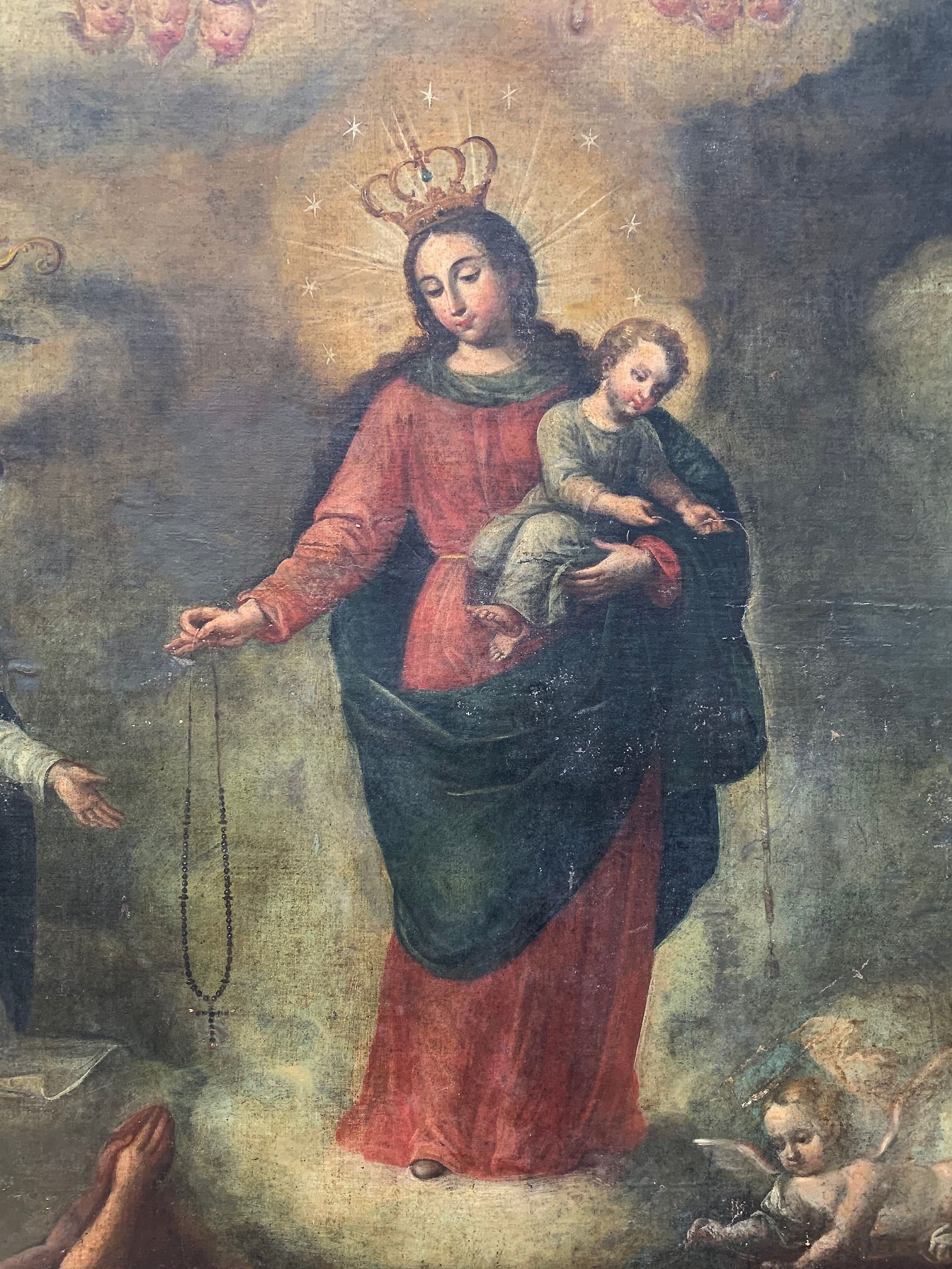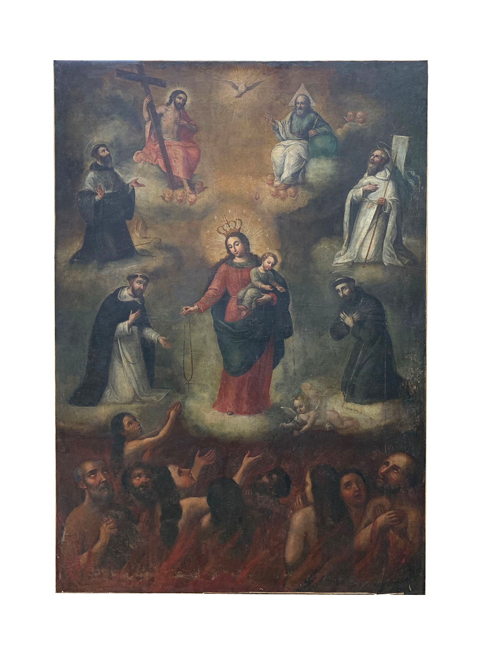 Nossa Senhora do Rosário e as Almas do Purgatório. Óleo sobre tela.